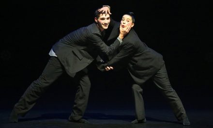Choreographed by Amy Seiwert, IT’S NOT A CRY did not reach the heights of Leonard Cohen’s iconic song “Hallelujah”, covered here by American singer, songwriter, and guitarist Jeff Buckley. Again, the dancers (Lubin and Montepara) saved the work with their almost flawless performance. I often ask why choreographers insert a hard to maneuver partnering phrase or a classroom version of a jeté (leap) in the middle of portraying a serious relationship between two people. It comes across as a television drama interrupted by a long-running commercial. This is not a poorly crafted duet, far from it.  Seiwert definitely knows how to put a dance together, but this work lacked depth.