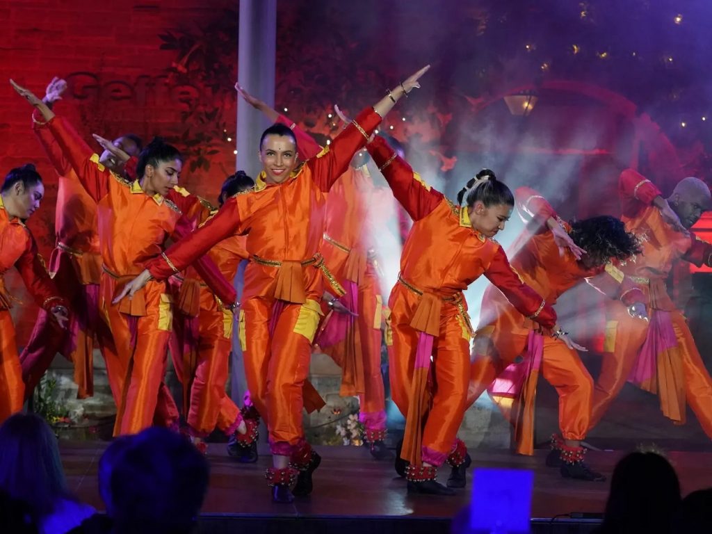 The series of solos were just that and each one had s specific take on social media, influencers, TikTok, etc. Much of it was humorous and gave ample opportunity for facial expression which is a hallmark of this company. Faces molded to the emotion en plastique! It was wonderful to see. And speaking of which, I was particularly amazed and appreciative of Payal Parida’s face and movement. She performed the “Requisite Tik-Tok solo for Indian Girl” and was hilarious in the tilt of her head with eye-ography and clean gestures. Her face was extremely expressive, and my eye was constantly drawn to her in every piece. Kaya McAfee was hysterical in her solo which took place during an audition with her number pinned to her leotard. Every time she came across the floor a great group covered her doing the same movement referencing the herd trying to be seen in the front at an audition. It was a hoot. A lovely duet followed, “And sometimes it’s a duet” with Delaney Blume and Bryn Bohannan. This was contemporary movement and showcased the floor work and partnering of the two performers. The first act ended with a rollicking number with brilliant costumes. We were then treated to a short movement lesson from Daniels which included fun port-de-bras as well as some fabulous hand mudras.