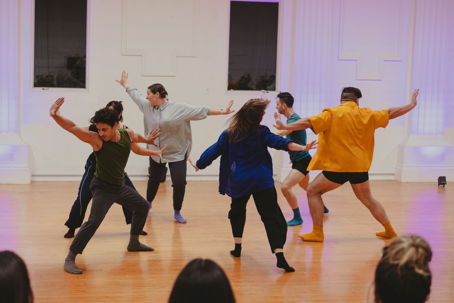 The dancing was relatively brief, a roughly 30 minute performance that carried a comedic tone. The dancers embodied their consent based practice through playful improvisation and ensemble work. One memorable section featured the dancers Celine Sauquillo Davis, Darby Epperson, Matthew Krumpe, Andrew Pearson, Tiffany Sweat, and Daurin Tavares standing in a circle, each contributing a movement of their own. The rest of the group attempted the steps to whatever degree felt right for them, honoring individual limits and choice. Gradually, these gestures evolved into a shared phrase, repeated until each dancer chose to sit out. This section beautifully demonstrated the company’s commitment to personal agency and bodily awareness.