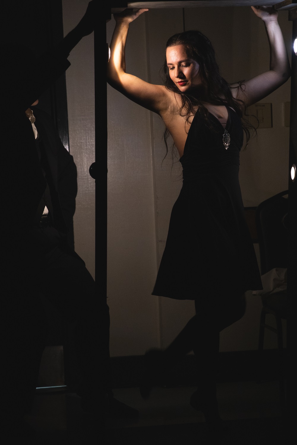 “Take 5” Dave Brubeck’s wonderfully recognizable 5/count Jazz piece got us right into it. Five female dancers: the fiery Mara Hancock, Denali Huff, Rebecca Lee, Anne Lee Rohovec, the leggy lyrical Joylin Lambey, with two male dancers Bryan Burns, and Arturo Gonzales, who gave us a taste of the energy of Luigi, Claude Thompson and Jaime Rogers with syncopation and rhythms of the 50’s. Then a pas de deux by Rebecca Lee and Bryan Burns in “Unsquared Affair” which followed after Apartment 5 with Lee and Raven Smith. “Apt 5” was a definite throwback to the New York Strip clubs of the 1970’s confined to two boxed-in females doing a selection of improvised undulations and performed on different sides of the room to music by Benoit & Thackery.