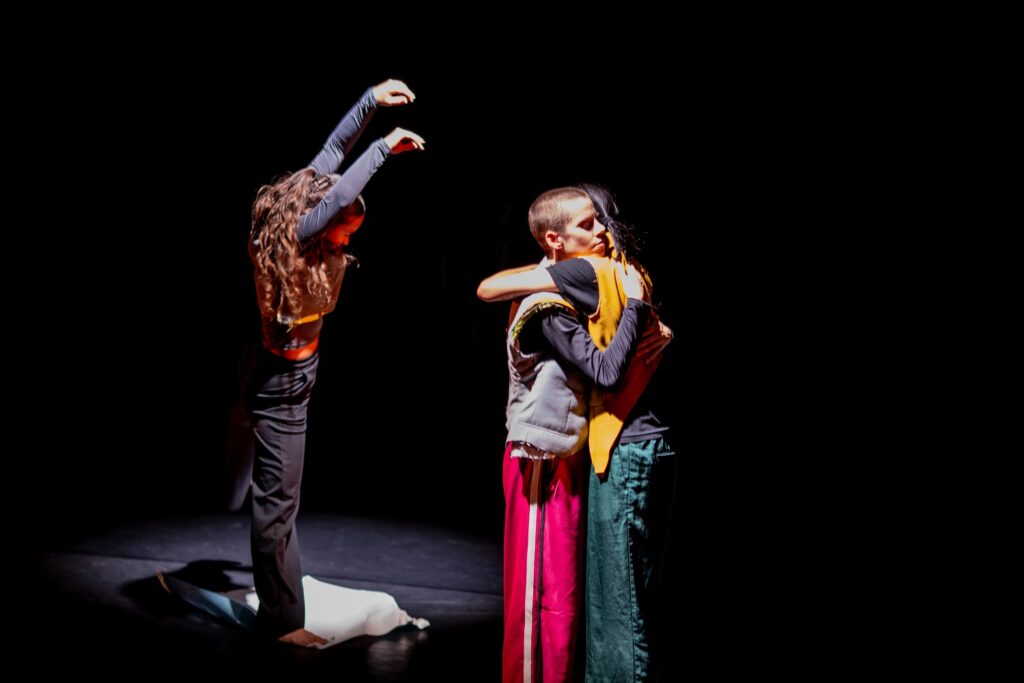 One section that stood out in my mind was when a single figure, Tyler Law, was being ostracized by the group became suicidal or emotionally destroyed. Another performer, Maya Peterson, unsuccessfully attempts to come to save her, and physically supports the wounded woman on her back as she crawls away. Varviani shows the effect of this on the others and the entire group becomes more empathetic.