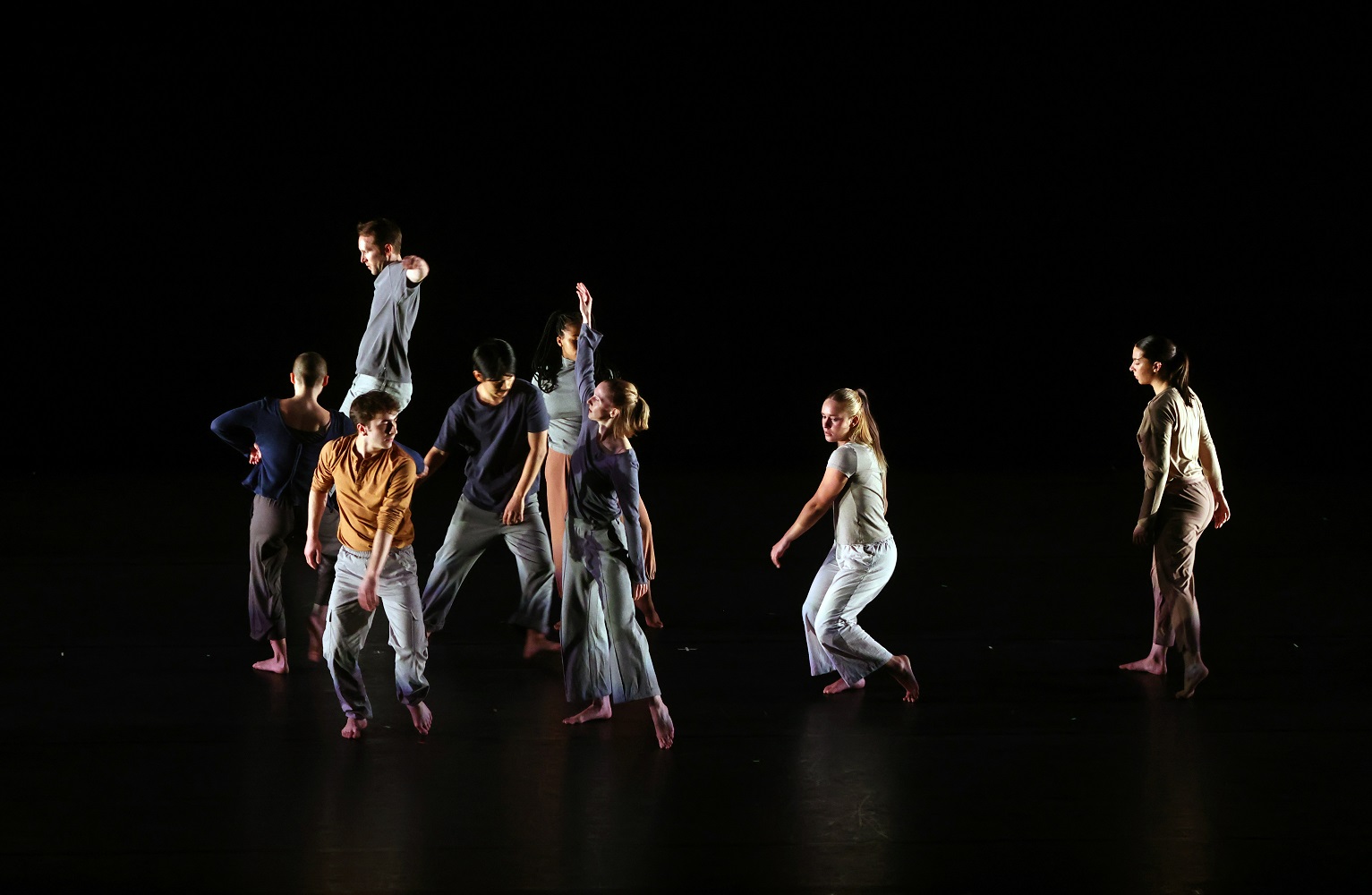 “Double Octet” (2021) is a piece particularly suited to the company with the addition of student dancers filling out the cast. This is part of Doug Varone and Dancers Education/Performance Project created in alliance with college and university dance departments across the country, a very savvy way to tour work throughout the U.S. university and college system. This project utilizes students to learn repertory and be mentored by company dancers. The outcome is a performance where the university students perform with the professional company members onstage. It is a brilliant way to further learning on a professional level with college students while giving them a taste of what is in store when working with a real touring company.