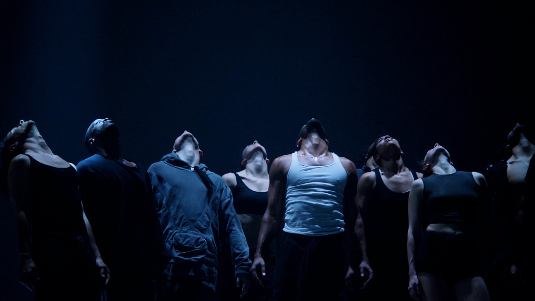 Juxtapose was the second piece of the evening, with choreography by Jacob Jonas and performance by dancers Tal Barnston, James Blackston, Isabella Caso, Chadwick Gaspard, Baptista Kawa, Taylor Lopez, Emma Rosenzweig-Bock, Renee Stewart, Layne Willis, and Jill Wilson. Really utilizing a sound effect, the choreography was loud and abrasive, and strong tempered. Each dancer began by falling to the floor and rolling from a different body part such as a hip, or shoulder, and letting the appendage that follows fall on its own to the floor. This sound of skin slapping the marley at any given time was unusual and very effective. Without a microphone, or echoed space, JJTC managed to give off something loud that resonated within my own body. There was a type of rippling pattern you would see or feel from an echo during moments of Juxtapose, where one dancer would crouch to the floor in an unusual shape, and the other dancers would place their heads in a row on the body in sequence like the undulation of a wave. Juxtapose was just as it suggests, juxtaposed choreography between simple and soft and then loud and harsh. With both linear lines and balletic extensions we had nods to the old in a way that felt relevant and necessary. The first part of the piece was in pure silence, and every breath, every skin tough could be felt and heard. The second part of the piece was the first part but with a change of lighting by the wonderful Will Adashek and music by composer Anibal Sandoval. With almost iridescent violet lighting, several small spotlights graced the stage in a predictable sequence, like something was being searched for but nobody knew what. Unfortunately, it felt as though the intended repetition was not nearly as constructive or beneficial from an audience’s perspective as the length of the sequence was too long. However, given the recurrence, it did give audience members a chance to truly soak in movement they may not have given notice to the first time around. Dance that makes you daze into daydreams or forgotten memories, such as JJTC, is the kind of dance you want to go back and see. There is a power each performer carries that is neither egotistical nor humble, but something in between. Being quite new to Jacob Jonas’ choreography, I can say without a doubt that this company is not to be missed live.