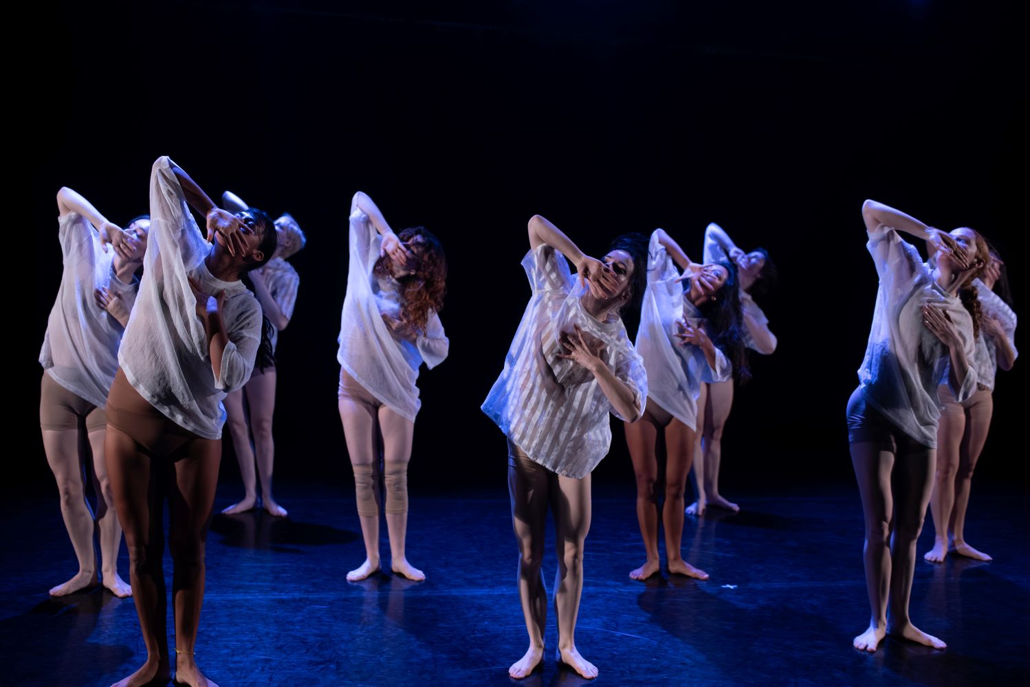 A memorable solo, Unseen Echo, came from Bethany Violett, performing choreography by Victoria Brown. Dressed in a long black gown and braid reminiscent of The Witch, Violett commanded the space with an eerie precision. As strobe lights flickered, she stared directly into the audience, her movement sharp and restrained. The piece ended abruptly, like a cinematic cut to black that left the audience feeling uneasy and reminiscent of Halloween just the day before.