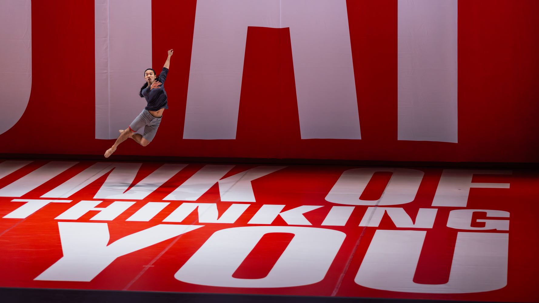 The program began with “Reflections” as choreographed by Millepied in 2013, in collaboration with 5 co-choreographers (listed below) which may help explain the inconsistent and overly busy movement. When the curtain rises, we are met with words in bold red stating “Stay thinking of me thinking of you” which covers the upstage drop and the stage floor. Designed by Barbara Kruger, this phrase gives one hope for an aching romance or a passionate life experience but only fleetingly do these moments come to the fore. Too often there is movement for the sake of movement with no clear point of view. The difficult piano score by David Lang expertly performed by Yanfeng “Tony” Bai, is a constant flow of notes with no particular mood or melody attached. It’s hard to tell which came first, the music or the choreography as one seems to follow the other in an endless loop.