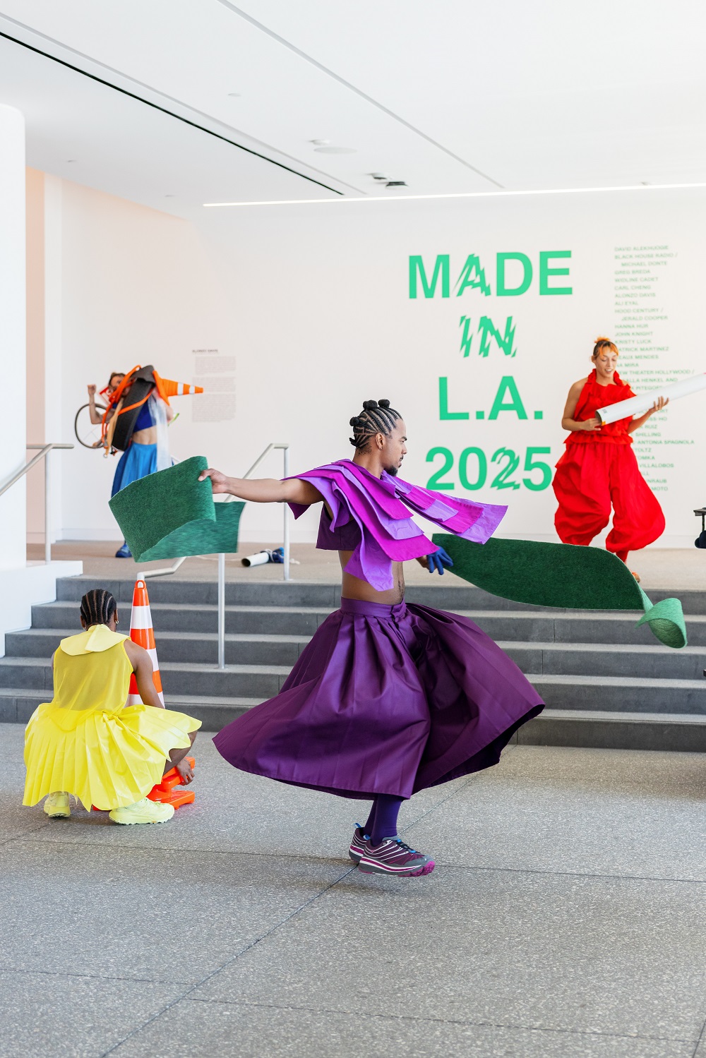 As part of the Hammer Museum’s Made in L.A. 2025, choreographer and visual artist Will Rawls presented a debut of his site specific performance work, “Unmade,” on Sunday, October 5th. It traversed throughout the museum over the course of the afternoon and touched on themes of repurposing materials, collaboration, and building community. The installation will be shown on various Saturdays until February.